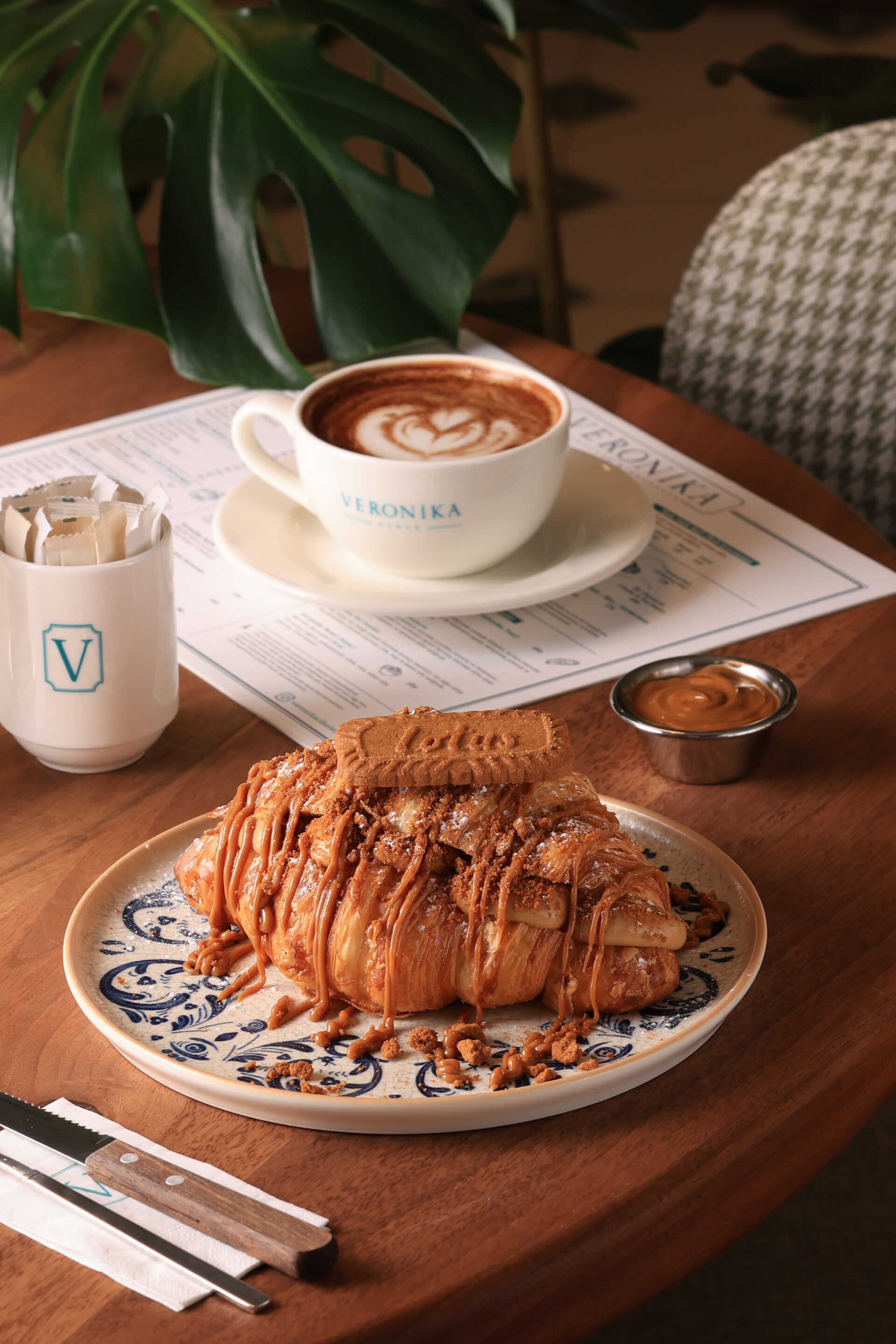Veronika'nın Lotus veya Antep Fıstıklı Kruvasanı, tatlı ve tuzlu unsurların mükemmel birleşimini sunar. Lotus kremasının zenginliği veya Antep fıstığının kıtır dokusu, her lokmada unutulmaz bir tat ve doku deneyimi sağlar.