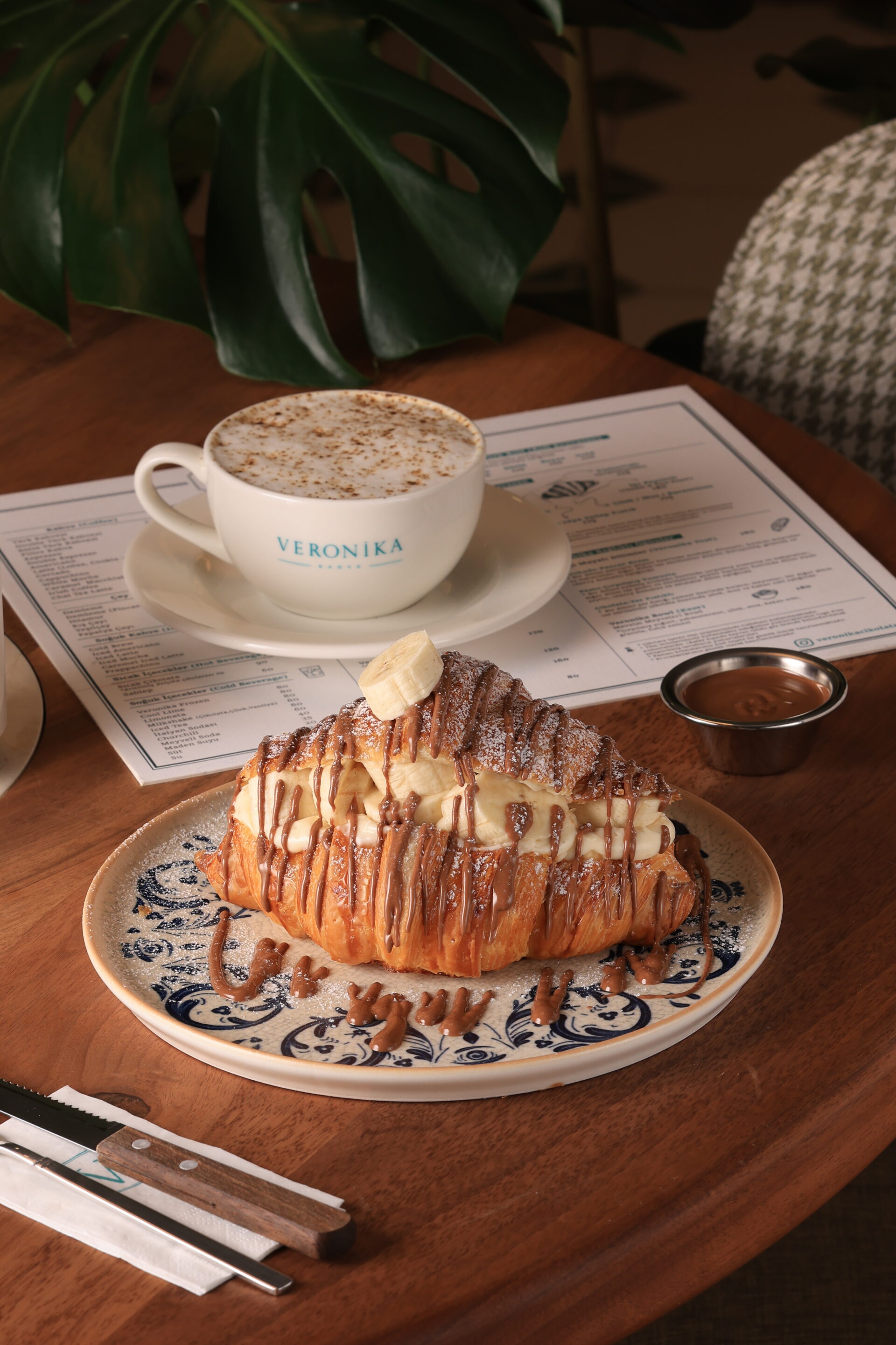 Veronika'nın Çilek, Muz ve Karaorman Kruvasanı, meyvelerin taptaze tatlarını çıtır hamurla buluşturur. Çileğin tatlılığı, muzun yumuşaklığı ve karaorman çikolatasının zenginliğiyle dolu, her ısırıkta lezzet dolu bir deneyim sunar.